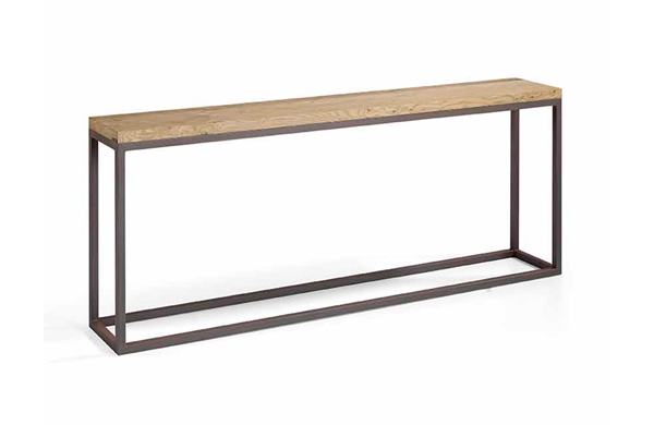 Consola LAVEGA fabricada en roble marinado y patas metálicas pintadas en color óxido marrón.