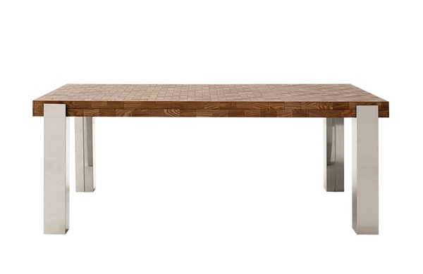 Mesa de comedor fabricada en madera de fresno 9cm de grosor, perfil recto, forma F2, acabado color 69 castaño.