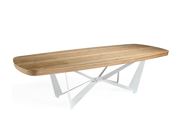Mesa comedor fabricada en madera de Roble Marinado o Fresno y patas P-2 en metal.