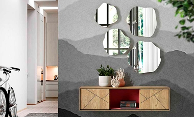 CONSOLA AUXILIAR COLGADA CON HUECO CENTRAL Y PUERTAS PIRAMIDE