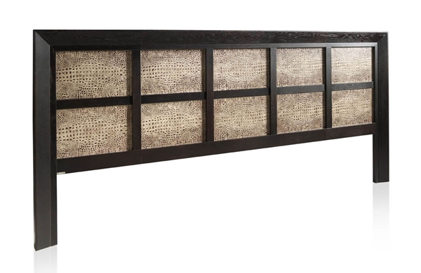 Cabezal corrido fabricado con madera de fresno y plafones tapizados.