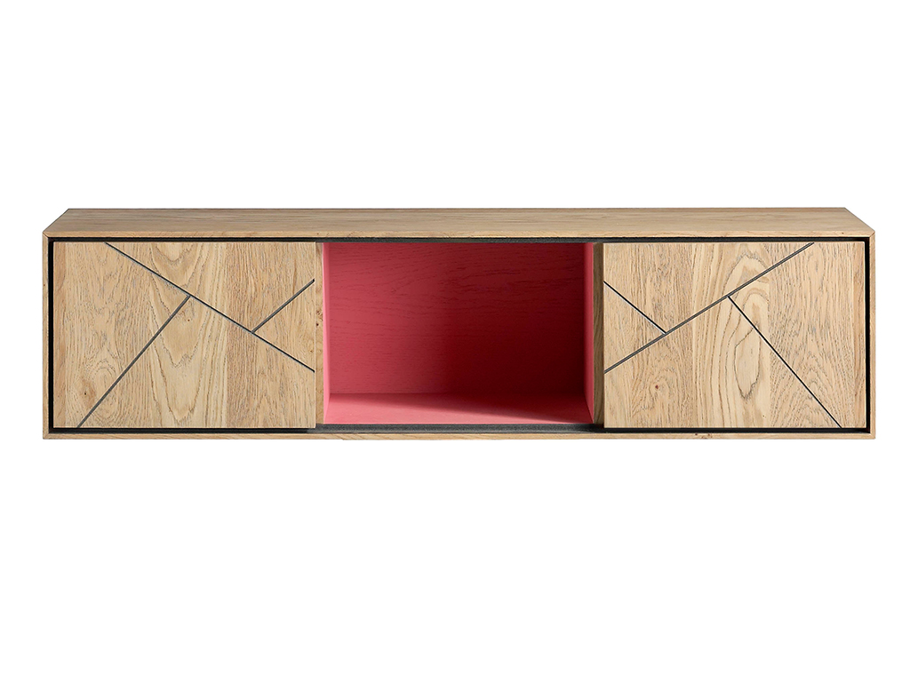 Consola auxiliar colgada fabricada en roble y fresno.