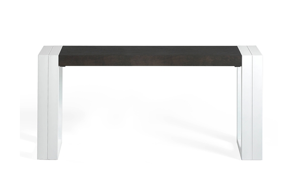 Esta consola se caracteriza por sus patas dobles ajustadas a los bordes de la tapa.