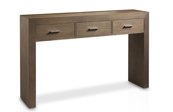Consola fabricada en madera de roble con tres cajones.