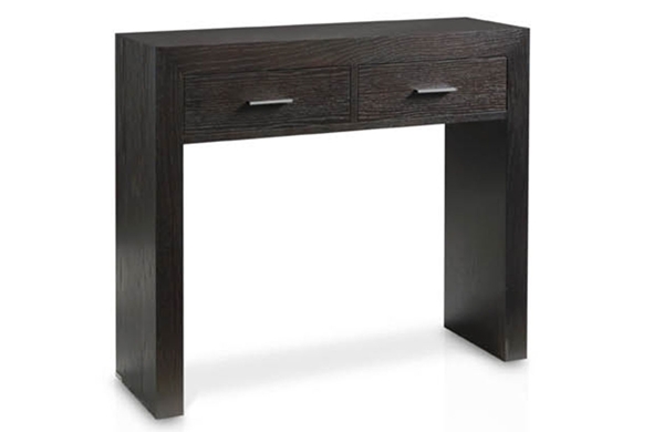 Consola fabricada en madera de roble con dos cajones.