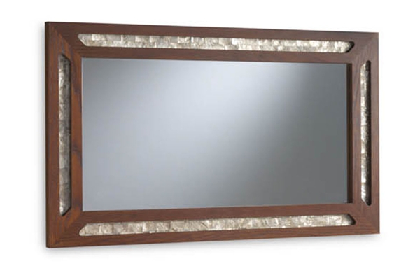 Espejo fabricado con madera de fresno y detalle de nácar incrustado.