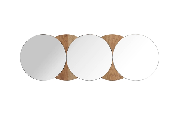 Espejo con 3 lunas redondas y 2 plafones de madera.