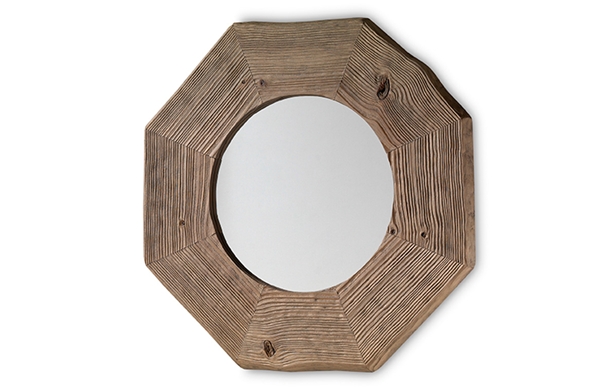 Espejo fabricado en madera de mobila y diseñado en forma de octógono.