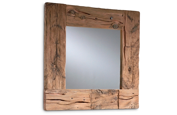 Espejo fabricado en madera de mobila vieja y terminado en acabado reciclado ecológico.