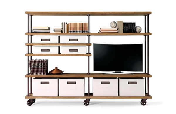 Estantería de 250 cm fabricada en madera de roble marinado, con posibilidad de fabricarse en otras maderas como Mobila, Mobila Vieja, Fresno, Roble y LCH (liso chapado). Los laterales y travesaños interior estan fabricado en metal y pueden pintarse en distintos acabados, Óxido Marrón (OM), Oro Viejo(OV) y Cobre Viejo (CV).