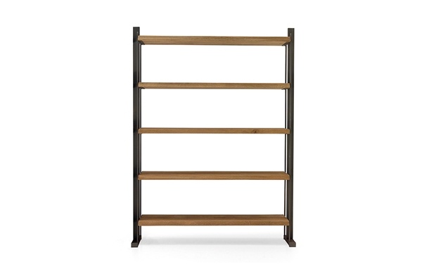 Estantería de 150 cm fabricada en madera de roble marinado, con posibilidad de fabricarse en otras maderas como Mobila, Mobila Vieja, Fresno, Roble y LCH (liso chapado). Los laterales estan fabricado en metal y pueden pintarse en distintos acabados, Óxido Marrón (OM), Oro Viejo(OV) y Cobre Viejo (CV).