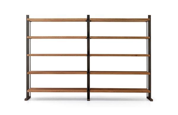 Estantería de 294 cm fabricada en madera de roble marinado, con posibilidad de fabricarse en otras maderas como Mobila, Mobila Vieja, Fresno, Roble y LCH (liso chapado). Los laterales y el travesaño interior están fabricados en metal y pueden pintarse en distintos acabados, óxido Marrón (OM), Oro Viejo(OV) o Cobre Viejo (CV).