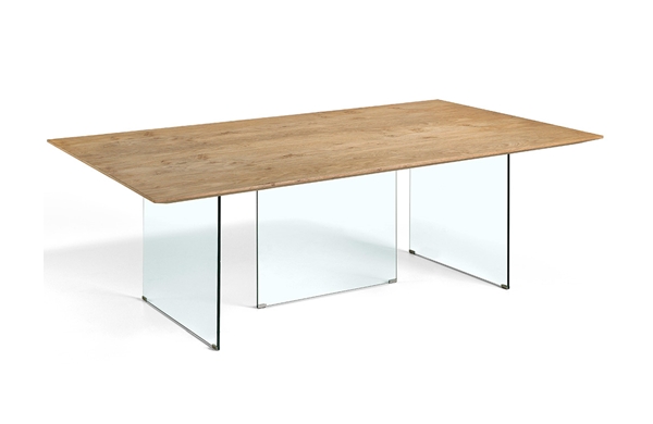 Mesa de comedor Waco fabricada en madera de fresno o Roble Marinado y patas de cristal P-26