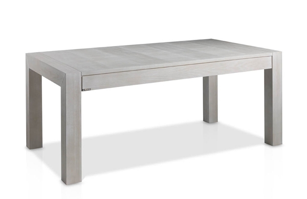 Mesa de comedor extensible fabricada en madera de fresno con sobre de damero.