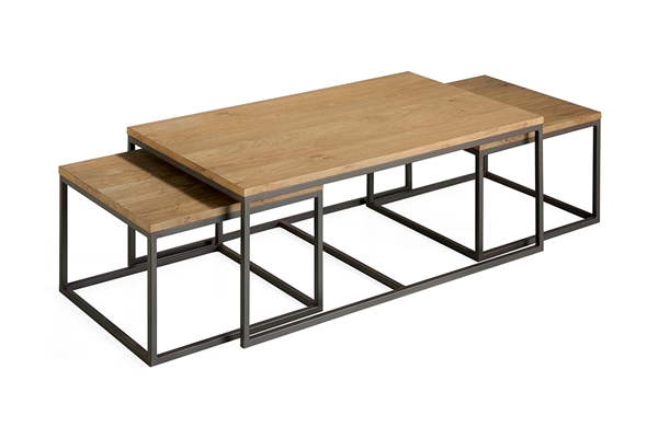 Conjunto de mesa centro con dos mesas auxiliares, con posibilidad de fabricarsen madera de roble marinado o fresno.