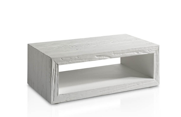 Mesa centro con estructura de madera de mobila erosionada artesanalmente.