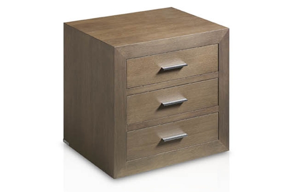 Mesita fabricada en madera de roble con tres cajones.