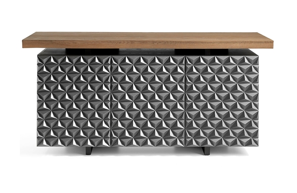 Este aparador está caracterizado por tener 3 puestas con detalles de pirámide en relieve.