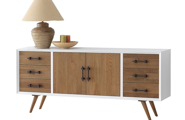Los cajones, las puertas y las patas estan fabricadas en madera de Roble Marinado con posibilidad de poderse fabricar en distintas maderas: Mobila, Mobila Vieja, Fresno, Roble Marinado, Roble. Los cajones y los frontales puede pintarse en toda la gama de nuestros colores a excepción del Roble Marinado que es madera/color único.