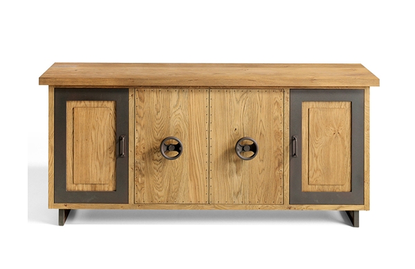 Aparador Volan fabricado en madera de Roble marinado con el marco de las puertas y las patas en color Óxido Marrón.