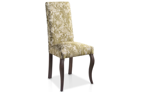 Silla tapizada con diseño de pata isabelina y estructura de madera de fresno. Alto asiento : 48 cm