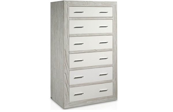 Chifonier seis cajones con estructura de madera de mobila erosionada artesanalmente y frente de cajones en madera de fresno.
