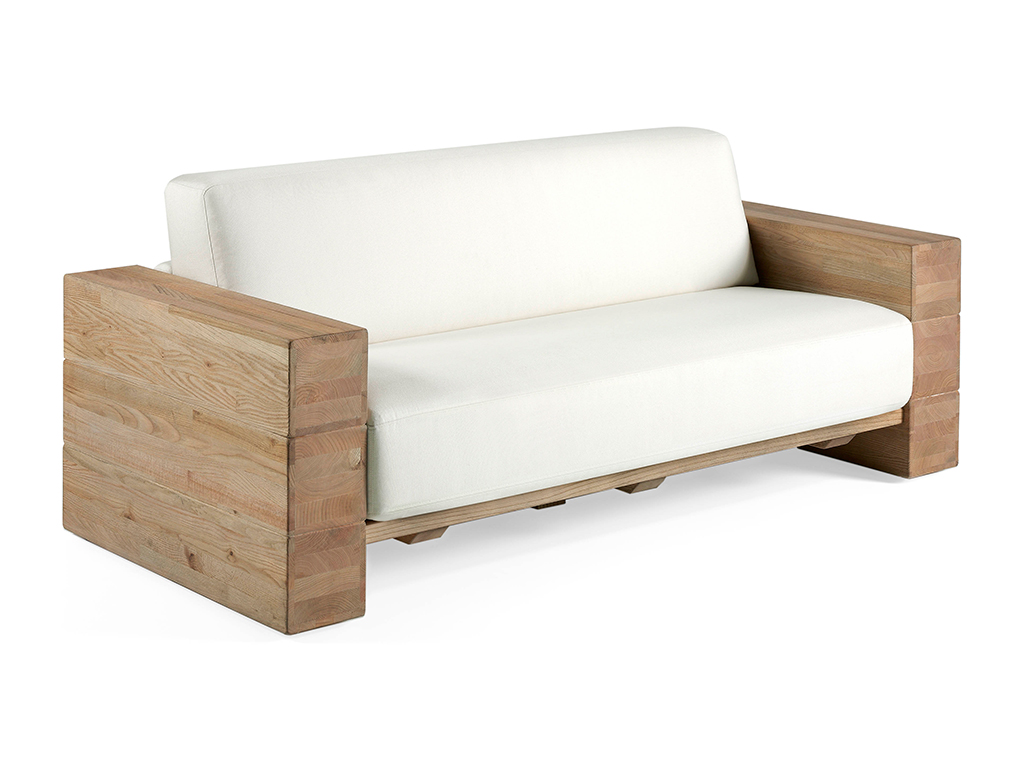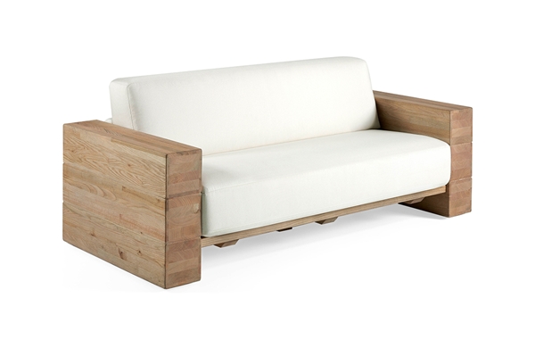 Sofá dos plazas fabricado en madera de mobila termo-tratada para exterior.