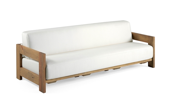 Sofá tres plazas fabricado en madera de mobila termo-tratada para exterior.