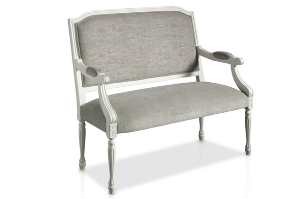 Sofá tapizado con estructura de madera de fresno y patas torneadas.